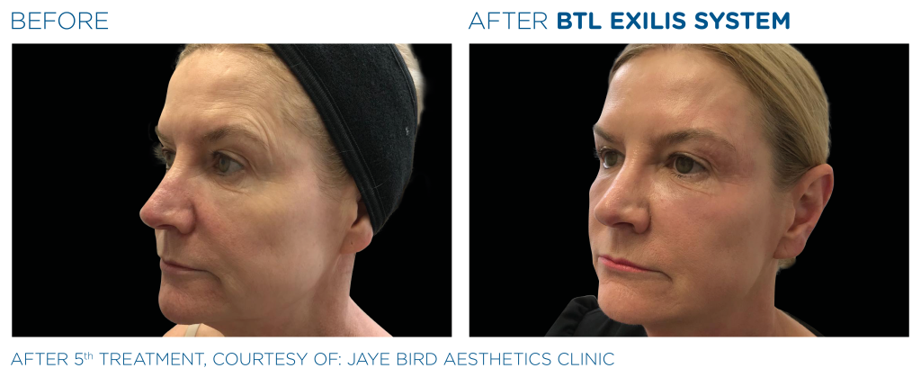 Exilis Ultra 360 este un echipament medical care folosește simultan radiofrecvența și ultrasunetele focalizate, fiind o apariție notabilă pe piața esteticii medicale. Tratamentul cu Exilis se poate realiza la nivelul feței fiind recomandat pentru rejuvenare facială (riduri, cearcăne, lifting NON-chirurgical,cicatrici), tratarea bărbiei duble (gușa), dar și zona gâtului (lifting, riduri, laxitate). Pentru ca tratamentul să fie eficient iar rezultatele să fie de lungă durată, zona tratată trebuie să ajungă în mod controlat la temperatura optimă de tratament, iar aceasta să se mențină timp de 4-5 minute pentru a pentru a stimula producerea de colagen și elastină. Tratamentul este complet nedureros, nu necesită anestezie sau recuperare post procedură. Suplimentar tratamentului de RF se pot utiliza Serumuri potrivite nevoilor tenului, atât de hidratarea și umplere (Acid Hialuronic, Aminoacizi) cât și pentru un ten matur (Aminoacizi, Oligoelemente, vitamine din grupul B) sau distrugerea localizată a testului adipos folosite în special pe zona submentonieră (gușă) -(Lipotene).